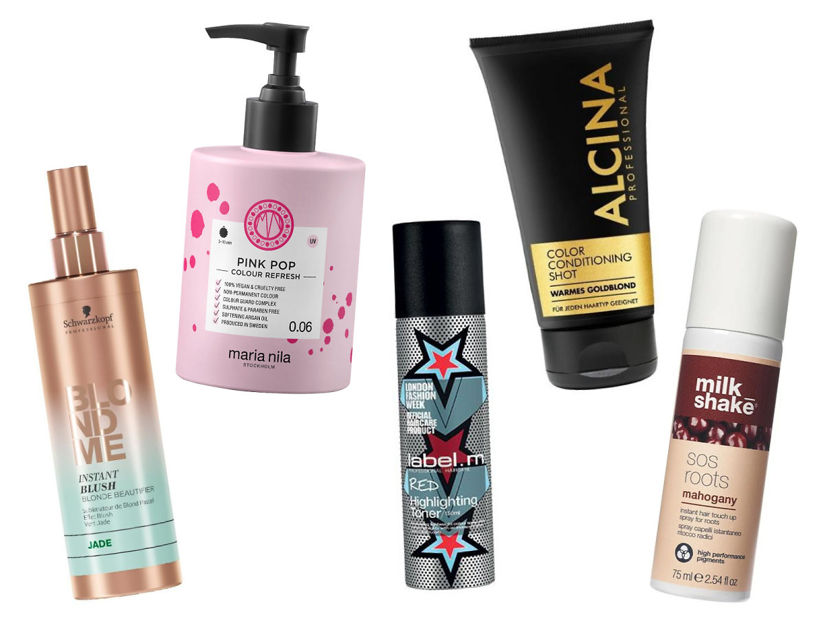 Tieto zmývateľné farby môžete kúpiť v širokej skale podôb: farbiace spreje (label.m, BlondME Instant Blush), tónovacie masky (Maria Nila Colour Refresh, Kevin Murphy Colouring.Angels) alebo vlasové korektory. Dočasné farbiace pigmenty sa nachádzajú aj v niektorých špeciálnych šampónoch či kondicionéroch, napr. rad Joico Color Infuse alebo Alcina Color.