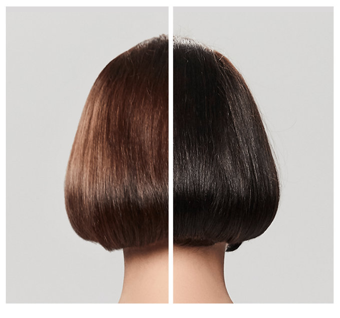 - Zelený toner: neutralizuje červené tóny, je ideálny pre čierne až tmavo hnedé vlasy vo výške tónu 1-4.