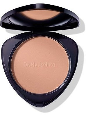 Naneste na tvár miesto hubkou najlepšie veľkým štetcom na líca, pozdĺž lícnych kostí na záver nimi prejdite pozdĺž línie vlasov, cez koreň nosa až po bradu. Na mastnú pleť použite ako podklad Dr.Hauschka sypký fixač púder.