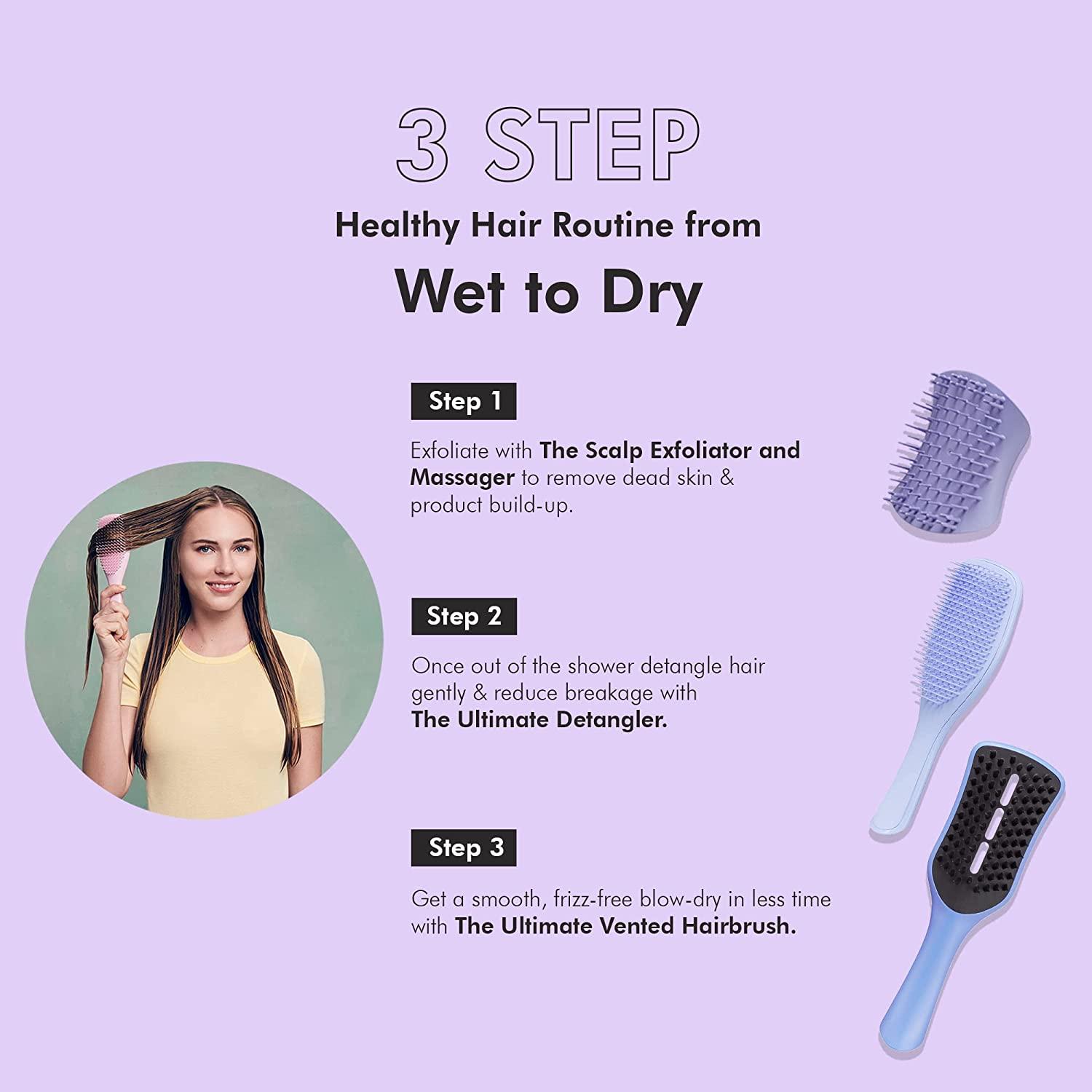 Vsuňte prsty do zaoblenia kefy a masírujte s ním pokožku hlavy po dobu 3 minút. Pre exfoliáciu masírujte krúživými pohybmi, alebo ťahom od čela až po zátylok hlavy. Pre aktiváciu tlakových bodov na pokožke hlavy na kefu pri masáži jemne tlačte.