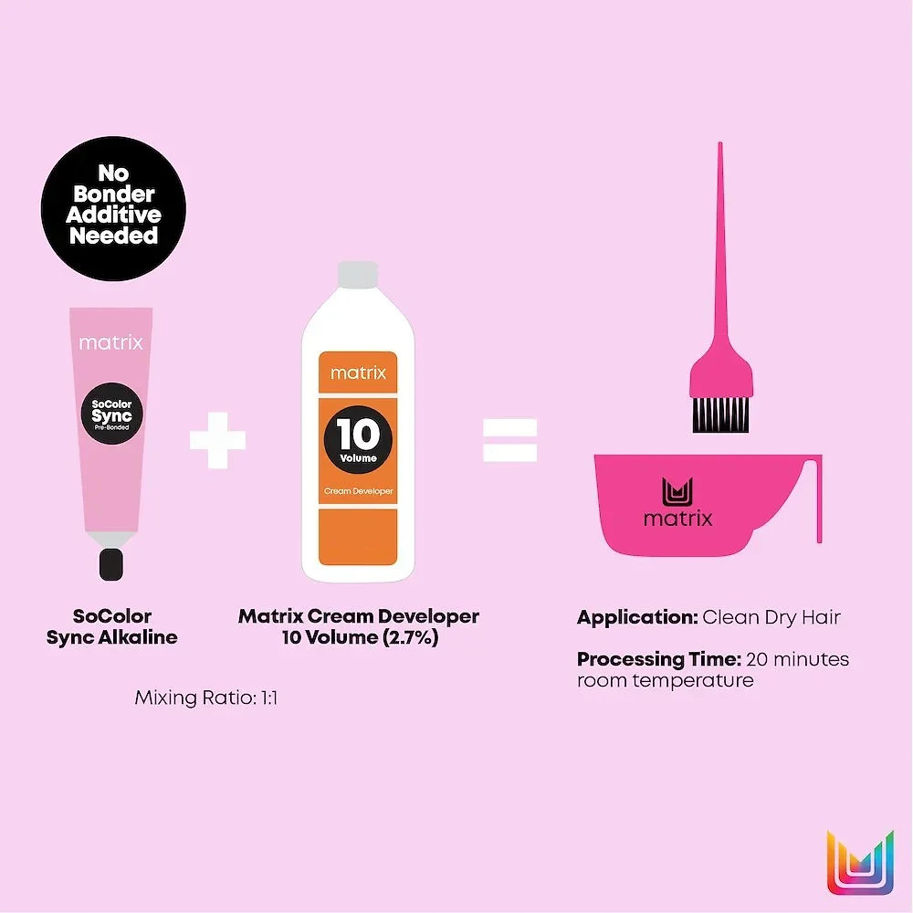 Farbu zmiešajte s vyvíjačom v pomere 1:1. Zmes okamžite naneste na vlhké alebo suché vlasy. Nechajte pôsobiť 10-20 minút v závislosti na požadovanom výsledku (10 minút pre jemné natónovanú, 20 minút pre maximálnu neutralizáciu). Potom vlasy dôkladne opláchnite.