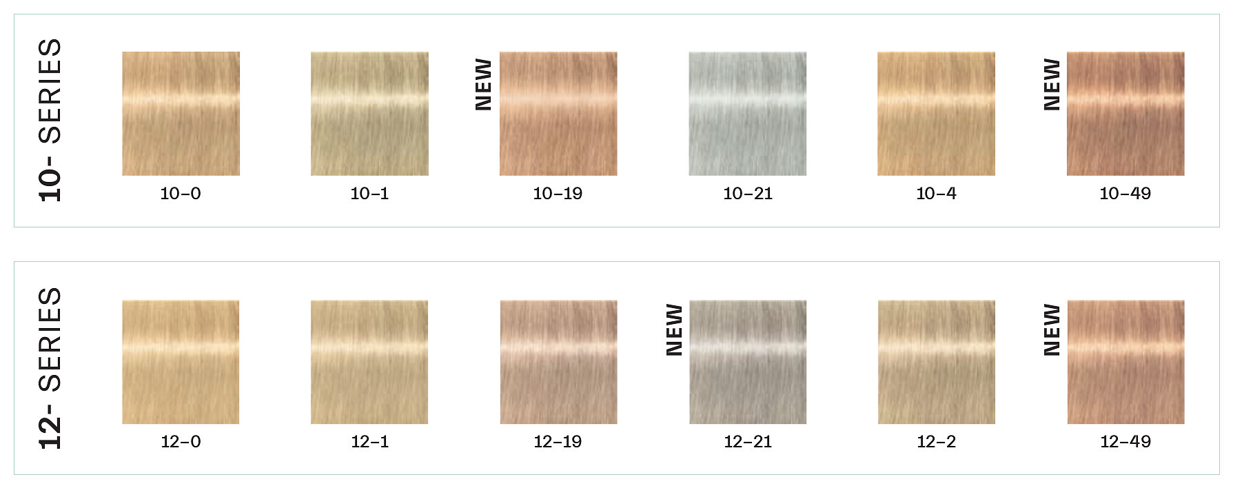 - Special Blonde (12-) - poskytuje silnejšie zosvetlenie o 4-5 úrovní, na použitie na základe 6 a svetlejšie, poskytuje silnejšie zosvetlenie. Najsilnejšia neutralizácia bude dosiahnutá s 12-2, nasleduje 12-1. Na zriedenie neutralizačnej alebo zosvetľujúcej sily použite 12-0.