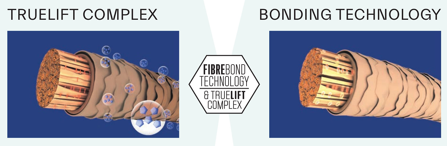 - Fibre Bond Technology - je zabudovaná priamo vo farbiacom kréme na ochranu väzieb vo vnútri vlasovej štruktúry počas zosvetľujúceho procesu. Počas procesu vysokého zosvetľovania sa vytvára okolo vlasových väzieb ochranná vrstva, ktorá znižuje množstvo stratených väzieb – v porovnaní s vysokým zosvetlením vlasov bez technológie Fibre Bond.