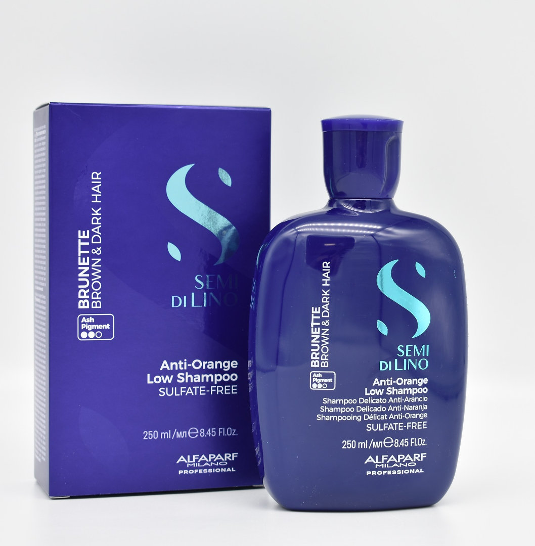 Šampón Brunette Anti-Orange z radu Semi di Lino B&B značky Alfaparf Milano je určený pre všetky hnedé a tmavé vlasy – prírodné aj farbené. Šetrne čistí vlasové vlákno, neutralizuje nežiaduce oranžové tóny a súčasne dodáva vlasom výživu, hebkosť a žiarivý lesk. Obsahuje modré pigmenty, ktoré prirodzene upravujú teplé podtóny a zaisťujú chladný, elegantný odtieň. Navyše chráni farbu pred účinkami modrého svetla z digitálnych zariadení a zanecháva vlasy svieže, hydratované a jemne prevoňané.