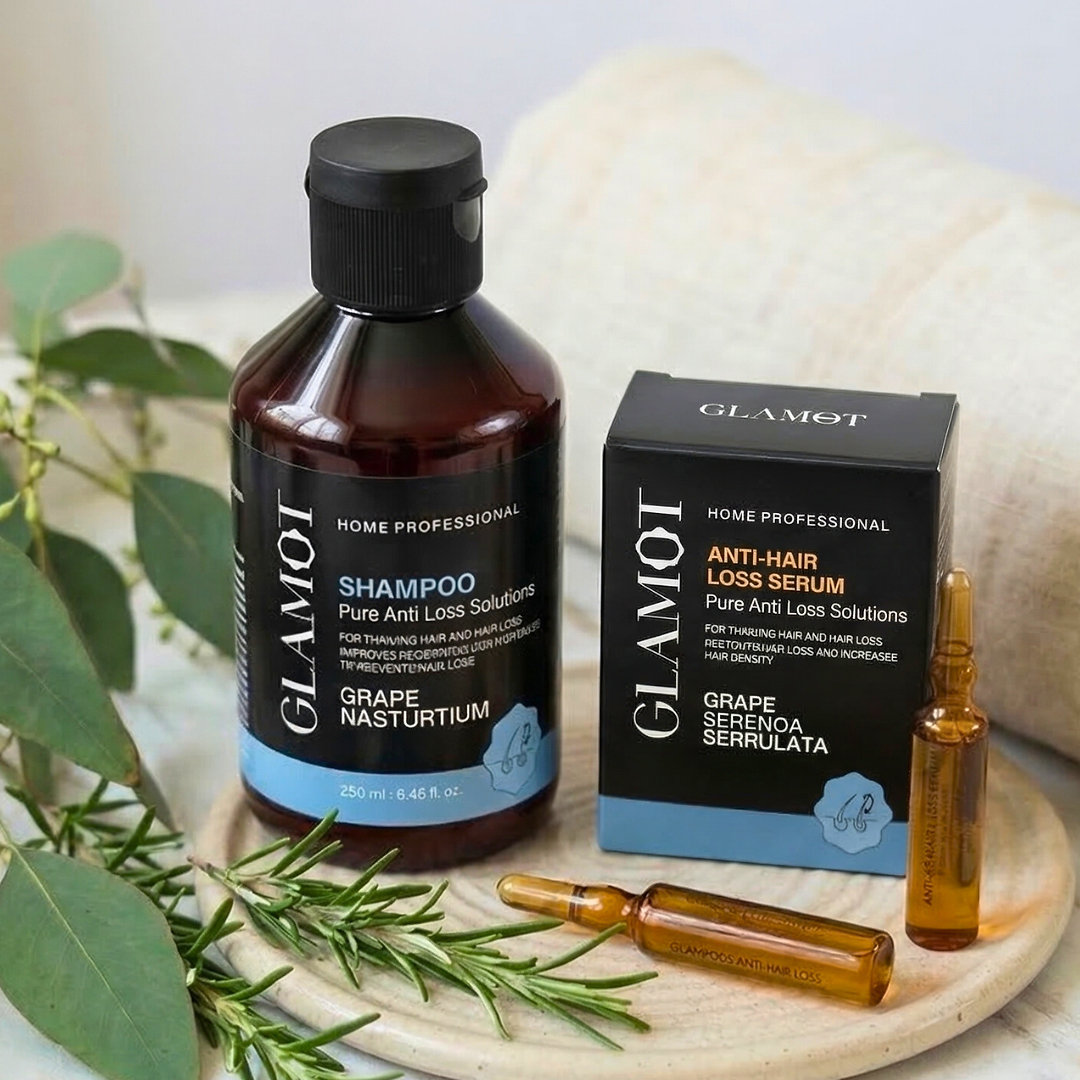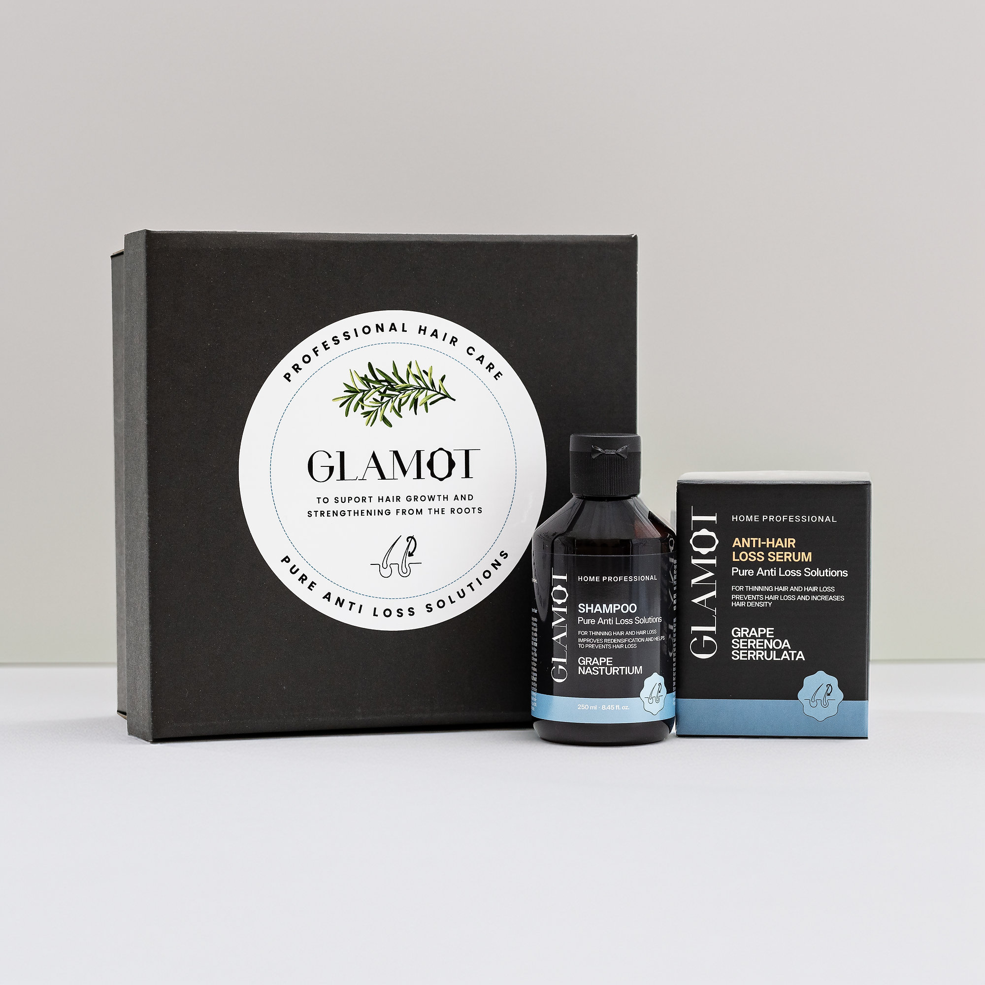 Podporte rast zdravých a silných vlasov s luxusným darčekovým setom Pure Anti Loss Solutions. Tento set, obsahujúci šampón a intenzívnu kúru v ampulkách, je navrhnutý špeciálne pre rednúce vlasy a cielene bojuje proti ich vypadávaniu. Vďaka účinnému extraktu z hrozna odrody Cabernet Sauvignon, bohatému na antioxidanty, dodáva vlasom potrebnú výživu, chráni ich pred škodlivými vplyvmi prostredia a revitalizuje pokožku hlavy.