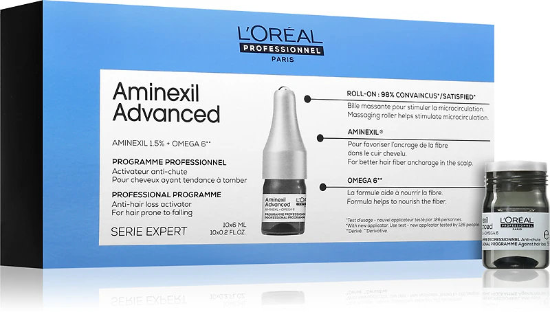 Intenzívna kúra proti padaniu vlasov, ktorá pomáha prerušiť začarovaný kruh rednutia a vypadávanie. Vďaka obsahu 1,5% aminexilu a Omega 6 mastnej kyseliny posilňuje ukotvenie vlasových korienkov, vyživuje vlasové vlákno a dodáva vlasom plnší vzhľad. Viditeľné výsledky už po 6 týždňoch pravidelného používania.