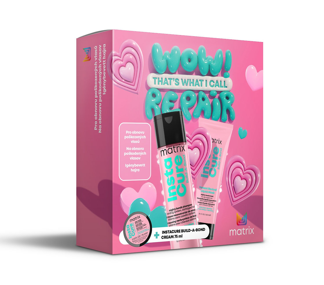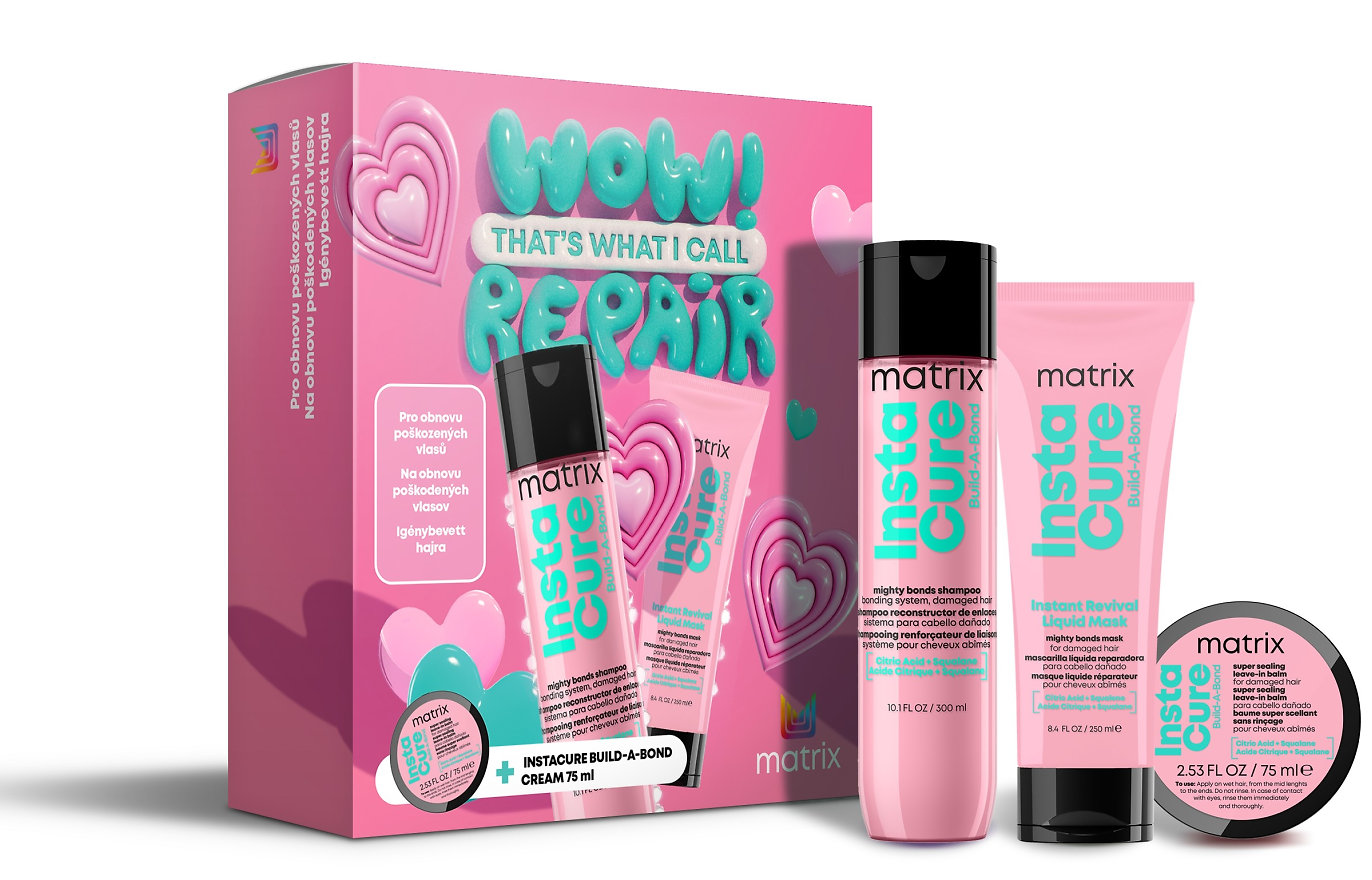 Prebuďte svoje vlasy k životu s darčekovou sadou Instacure! Vyživujúca starostlivosť s tekutými proteínmi zastaví lámanie všetkých typov vlasov a obnoví ich prirodzenú silu. Výsledkom sú zdravé a poddajné vlasy, príjemné na dotyk. Dlhé vlasy bez poškodenia vďaka kompletnej vlasovej starostlivosti Instacure od Matrix.